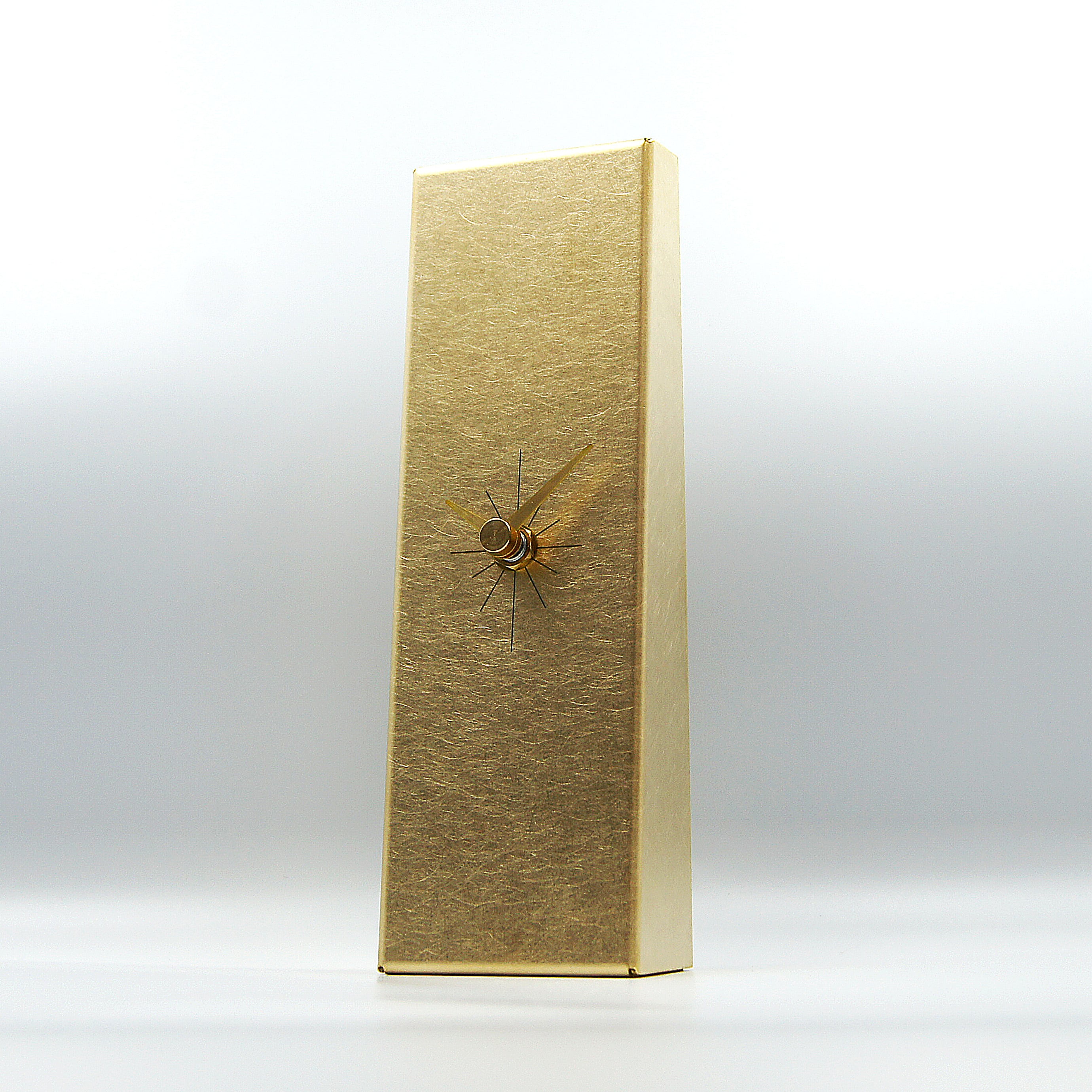 Standing 200mm tall, this vertical brass structure radiates an overwhelming presence, reminiscent of the ancient stone monuments known as "Monoliths" that have marked the passage of time since antiquity. The long, vibration-polished surfaces catch the light, allowing it to flow vertically depending on the viewing angle and reflecting the subtle gradations of shifting time. The 40mm depth creates a profound shadow, emphasizing both the substantial weight of the brass and the infinite depth of the time that flows through it.
