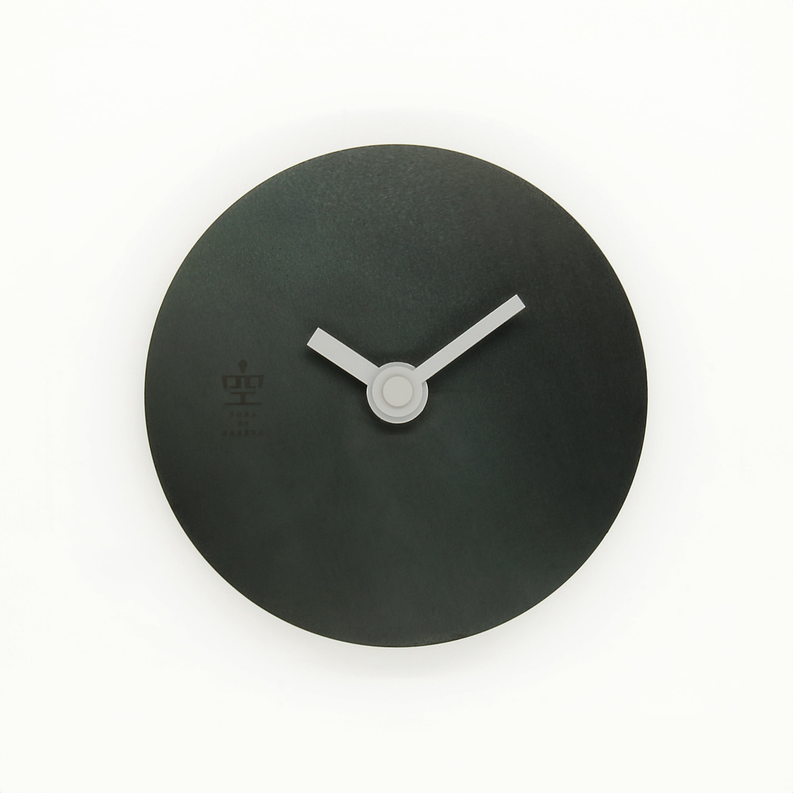 金属の質感を活かしたシンプルな時計です。サイズはφ100と小さめで取扱いやすく、掛け時計と置き時計の2タイプでご使用可能です。置き時計でご使用の際は付属の台座に掛けてください。